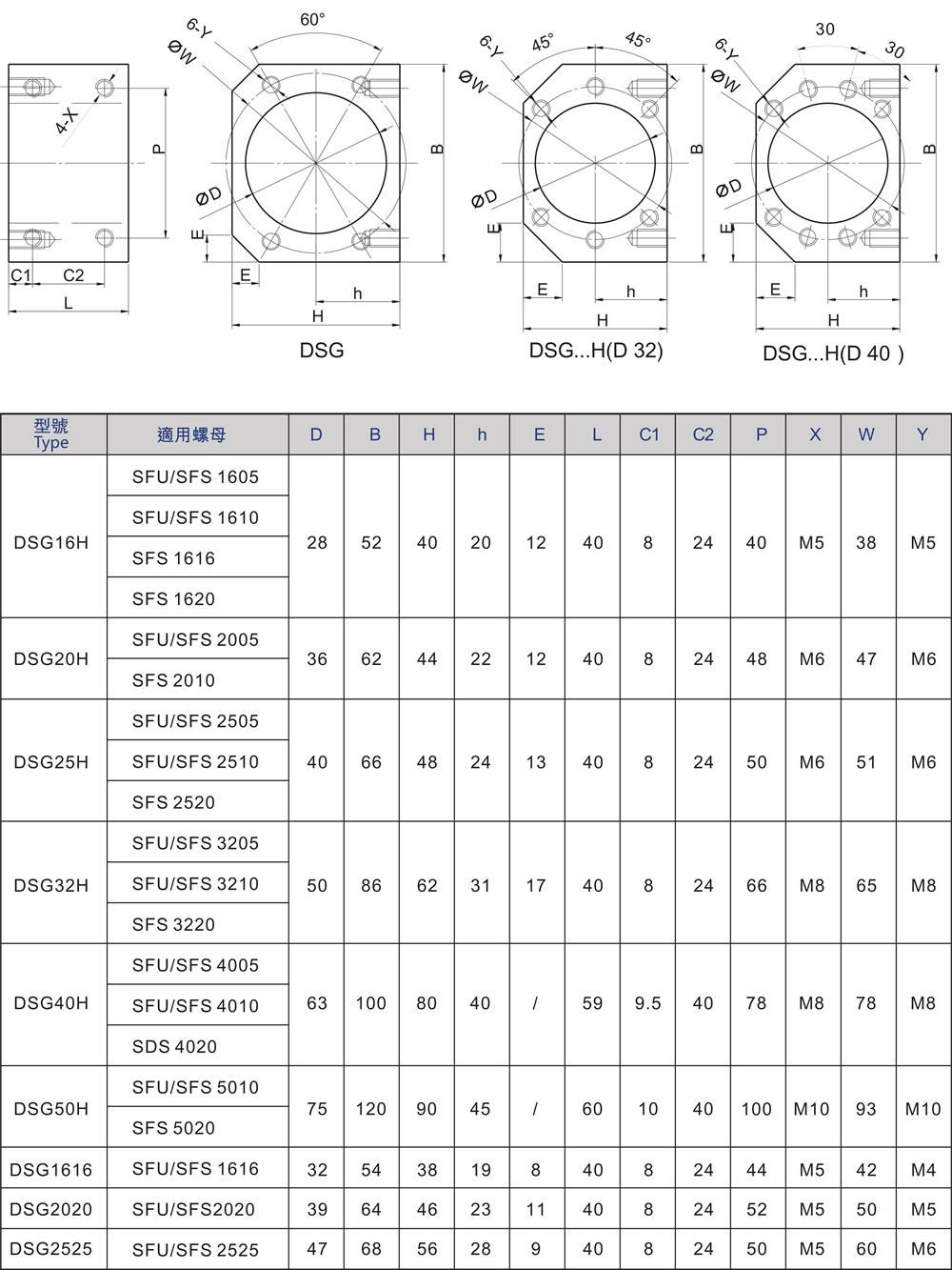 DSG螺母支撐座可以說一種軸承,來連接滾珠絲桿和電機,選擇最佳的軸承,來保證支撐座與滾珠絲桿在剛性方面的均衡,其高剛性低扭矩接觸角為三十度,接觸球軸承是能夠自由組合的角;支撐座的支撐單元、支撐部位有圓形和角型系列,為了考慮到安裝周圍的空間大小,設計方面是很精度的,由于支撐單元是小型的,所以安裝便捷,空間充足,降低了裝配工作時間,又提高了裝配精度。
