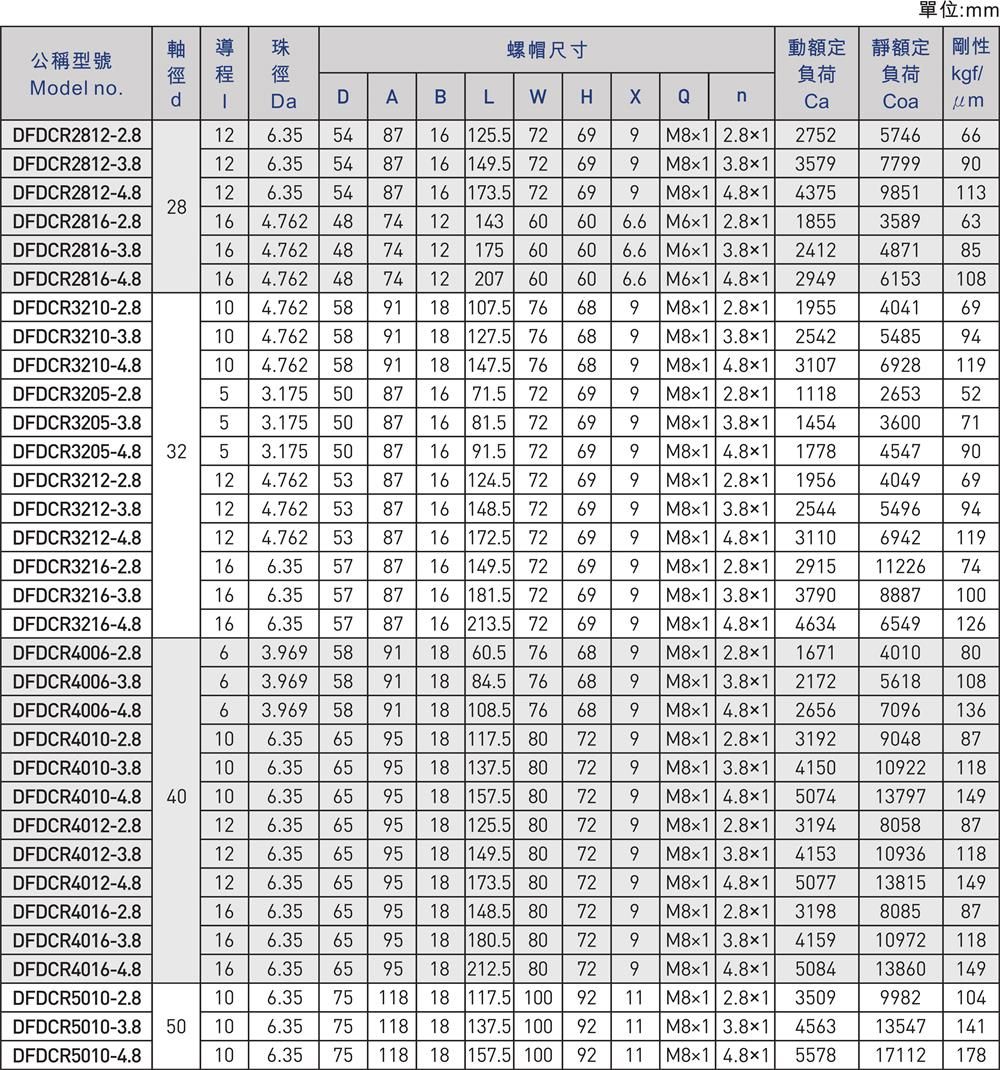 DFDC是滾珠螺桿中的一種類型,滾珠螺桿英文名Ballscrew,別名又叫球螺桿、導螺桿,是一種摩擦性小的鋼珠介于螺帽與螺桿之間反復做運動,將傳統螺桿的滑動接觸轉換成滾動接觸,然后再將螺帽內的鋼珠的回轉運動轉為直線運動的傳動機械組件。滾珠螺桿具有定位低污染、精度高、高壽命和可做高速正逆向的傳動及變換傳動等特性,在機械領域具有重要作用;根據上述特性,滾珠螺桿已成為近來精密科技產業及精密機械產業以及相關行業的定位及測量系統上的重要零組件之一。